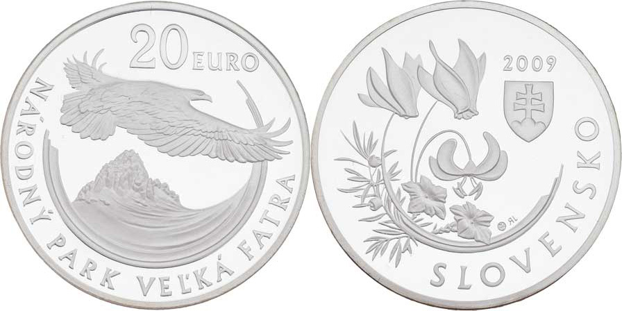 20 Euro 2009 - Velká Fatra, KM.109 (Ag925, 33.63g, pouze 12.600ks), kapsle, etue, certifikát R!