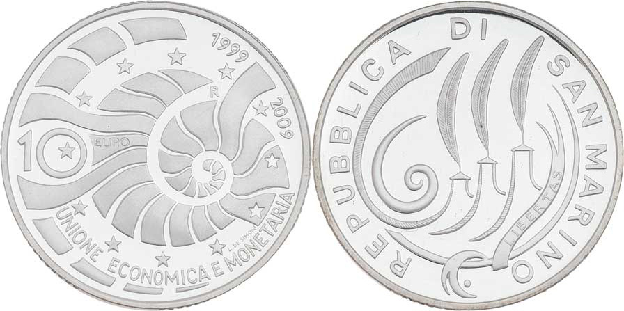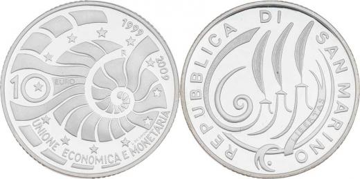 10 Euro 2009 - 10 let nové měny, KM.516 (Ag925, 22.00g, pouze 12.500 ks), kapsle, etue, certifikát, přebal