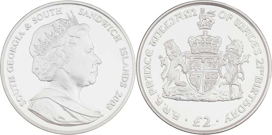 2 Pounds 2003 - 21.narozeniny prince Williama, KM.17a (Ag925), 28.515g