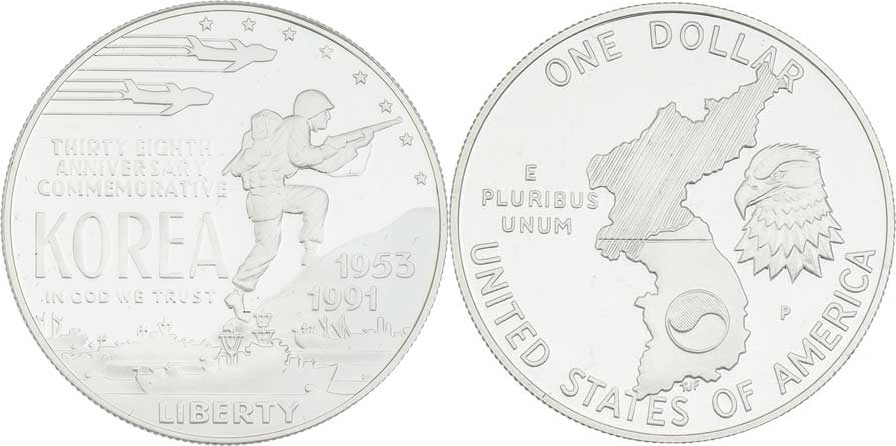 Dolar 1991 P - korejská válka, KM.231 (Ag900, 26.7g), kapsle