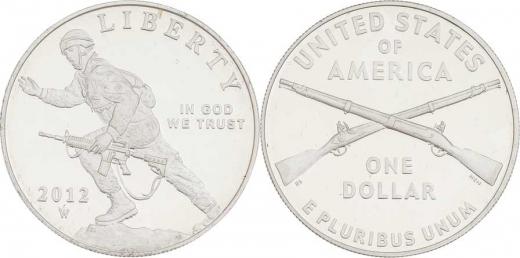 Dolar 2012 W - Pěchota pozemní armády USA, KM.nové (Ag900, 26.7g), kapsle