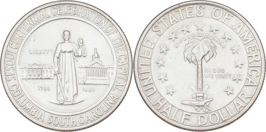 1/2 Dolar 1936 - Columbia / South Carolina, KM.178 (pouze 9.007 ks), 12.465g, nep.rysky, téměř RR!