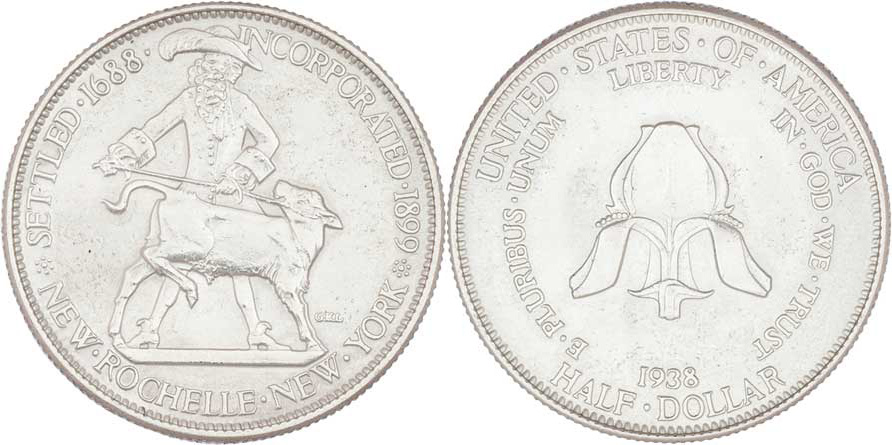 1/2 Dolar 1938 - New Rochelle, KM.191 (Ag900, pouze 15.266 ks), 12.478g, nep.hr., nep.rysky, téměř RR!