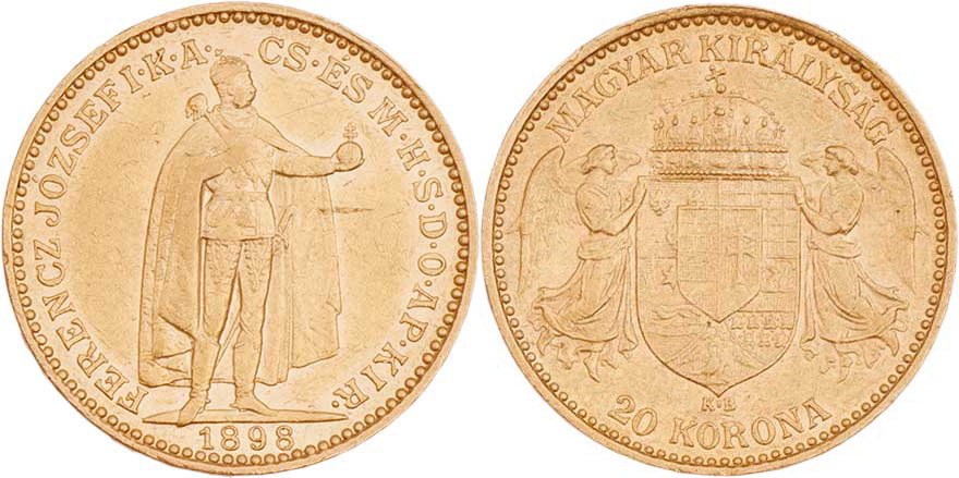 20 Koruna 1898 KB, 6.769g, nep.hr., nep.rysky, téměř