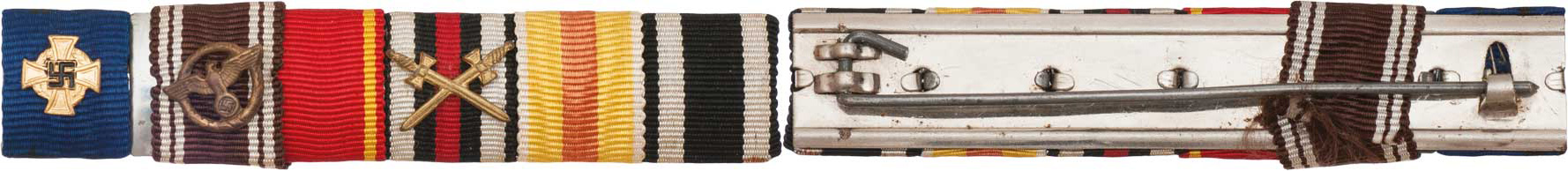Železný kříž II.třídy, Medaile za zásluhy (zinek), Kříž 1914-1918, Badenský kříž za 15 let služby a Kříž za 40 let služby, Kříž NSDAP, spona 6 stužek