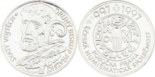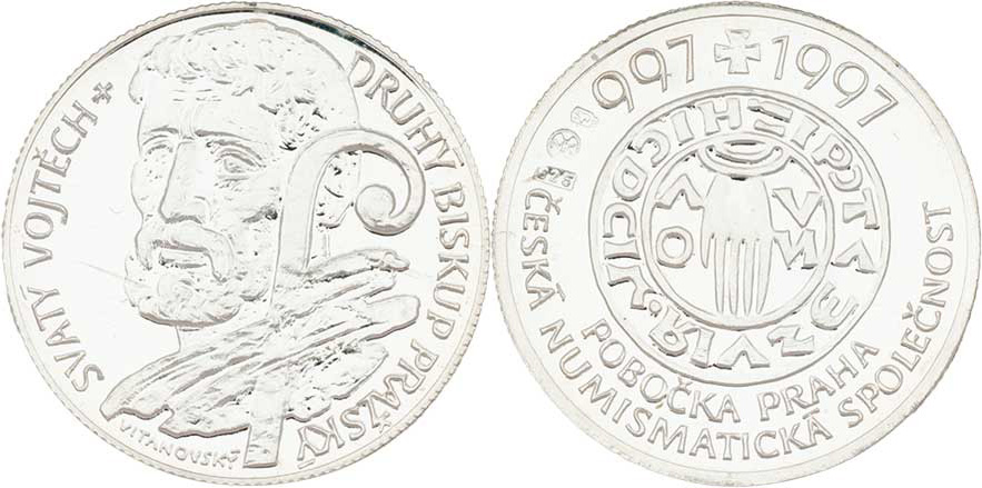 Vitanovský - Sv.Vojtěch, druhý biskup pražský 1997 - poprsí zleva, opis / replika denáru biskupa Vojtěcha, opisy, Sign., Ag925, 20mm, 4.365g (15ks), kapsle RR!