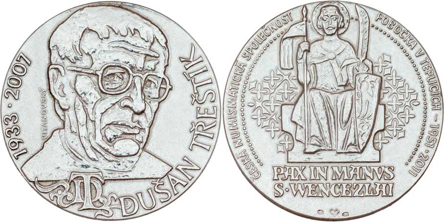 Vitanovský - Dušan Třeštík / 60 let pobočky 2011 - poprsí mírně zprava, monog., opis / sv.Václav, písmo, Sign., lesklé Ag925, 40mm, 26.214g, č.9 z 10ks RRR!