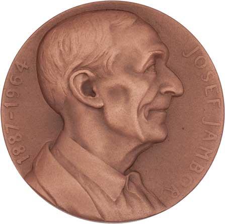 Josef Jambor, malíř Vysočiny b.l. (1997) - portrét zprava, opis, Sign., patin. měď 40mm, pouze 10ks RR!