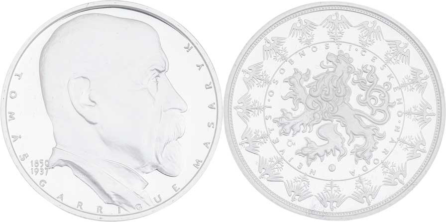 Největší osobnosti českého národa - T.G.Masaryk b.l. - poprsí zprava, opis / český lev, opis, kruh orlic, Sign., Ag999, 40mm, (29.1g), kapsle