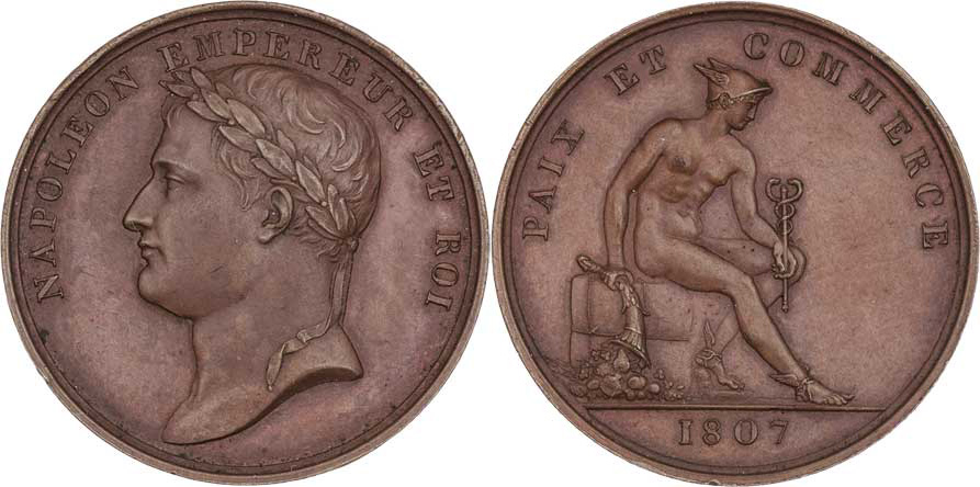 Nesign. - AE medaile - Mír a obchod 1807 - poprsí zleva, opis / sedící Merkur zprava, opis a vročení, 31mm, 12.895g, Zeitz.neuvádí, nep.hr., patina, téměř