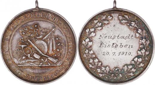 Neustadt-Eisleben 1910 - terč, pušky, prapory, opis / dubový věnec a rytý nápis, Nesign., Ag990, 36mm, 15.145g, původní přiletov. ouško, dr.hr., rysky, pat.