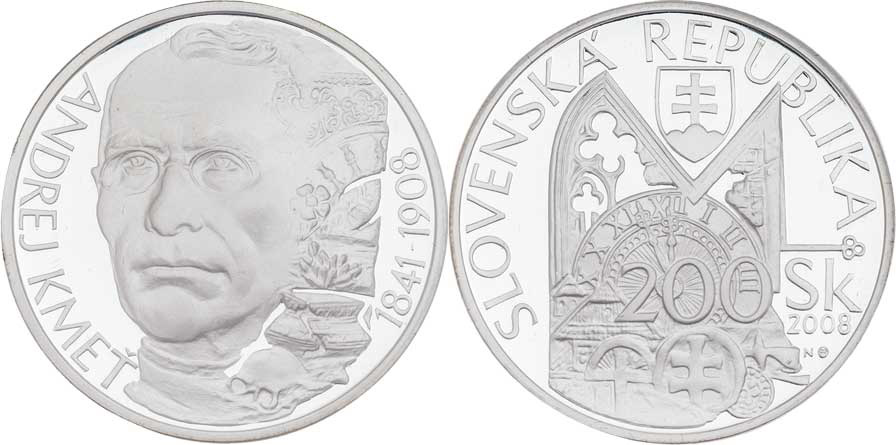 200 Sk 2008 - Andrej Kmeť, KM.88 (Ag900, 18.00g, pouze 3.400ks), kapsle, etue, certifikát R!
