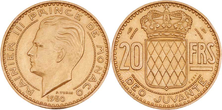 20 Frank 1950 - tlustý odražek KM.PE7a (Au900, pouze 325 ks), 14.532g, nep.hr., pěkná patina R!