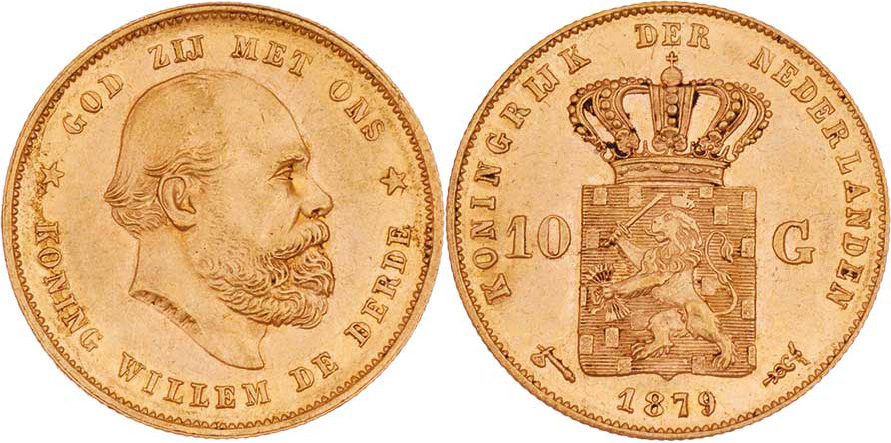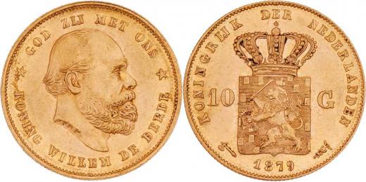 10 Gulden 1879, KM.106 (Au900), 6.717g, nep.hr., nep.rysky, pěkná patina, téměř