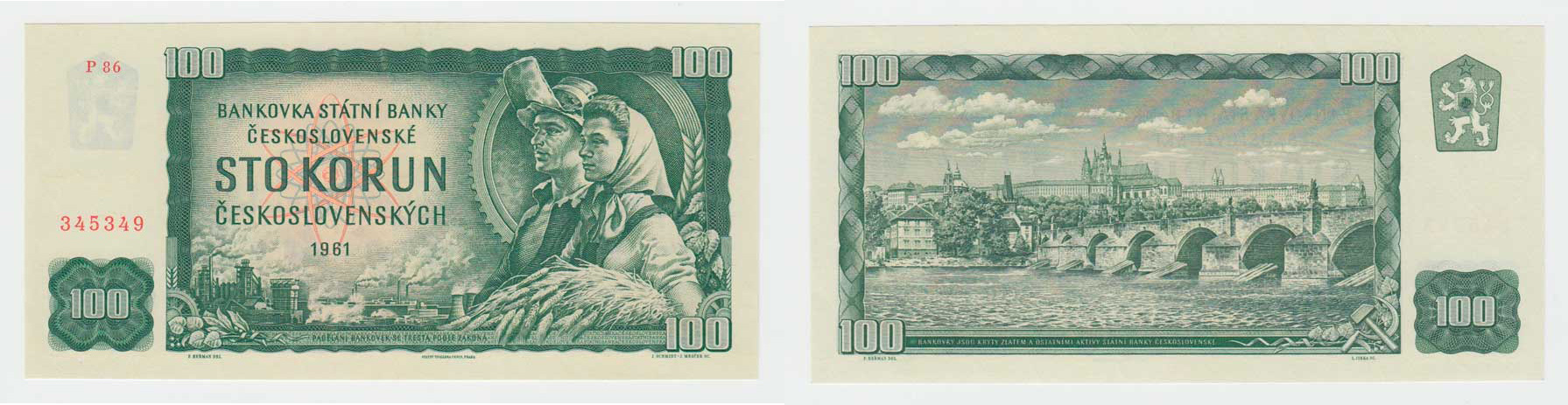 100 Koruna 1961, série P86, BHK.98c "neperf."