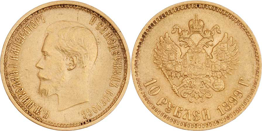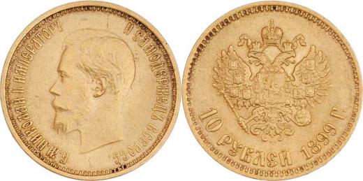 10 Rubl 1899 AG, Y.64 (Au900), 8.592g, nep.hr., nep.rysky, pěkná patina