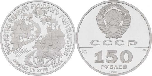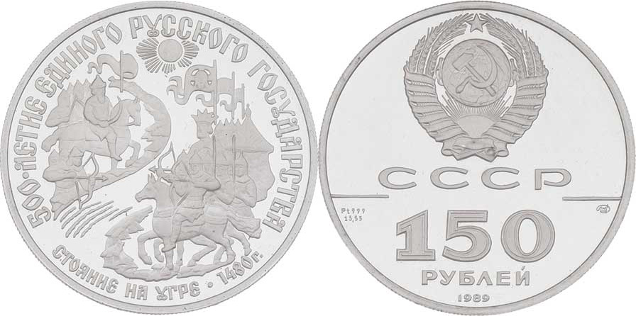 150 Rubl 1989 LMD - Obrana hranice na řece Urga 1480, Y.227 (Pt999, 15.550g, pouze 16.000 ks), kapsle R!