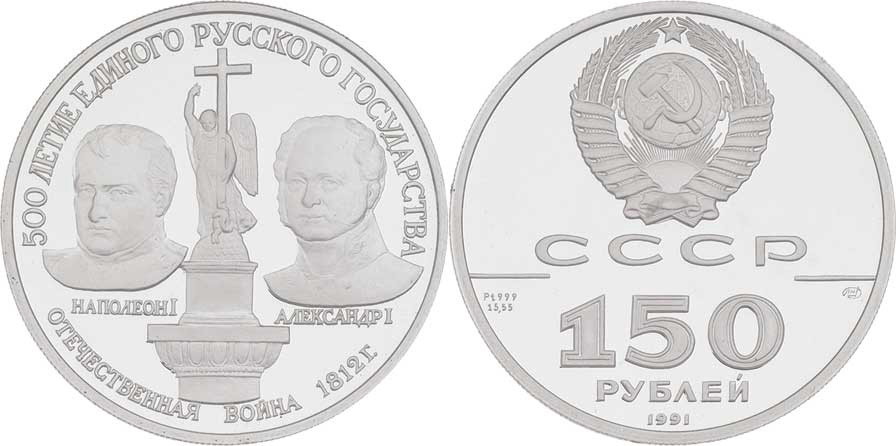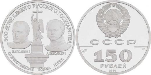 150 Rubl 1991 LMD - Velká vlastenecká válka 1812, Y.279 (Pt999, 15.550g, pouze 16.000 ks), kapsle R!