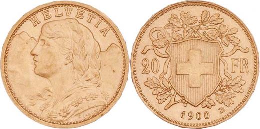 20 Frank 1900 B, KM.35.1 (Au900), 6.454g, nep.hr., nep.rysky, téměř