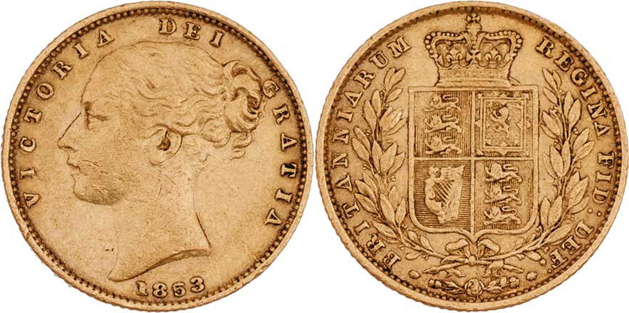 Libra 1853, KM.736.1, SCBC.3852C (Au917), 7.932g, nep.hr., nep.rysky, pěkná patina