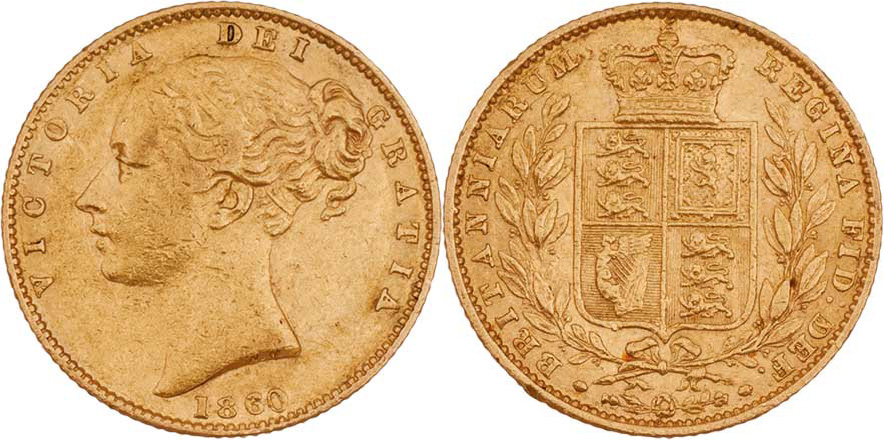 Libra 1860, KM.736.1, SCBC.3852D (Au917) - velká nula v letopočtu, 7.943g, nep.hr., nep.rysky, pěkná patina