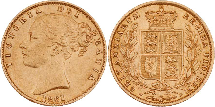 Libra 1861, KM.736.1, SCBC.3852D (Au917), 7.945g, dr.hr., nep.rysky, pěkná patina