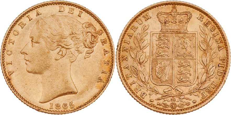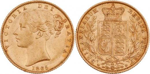 Libra 1865 - razidlo reversu s číslem "31", KM.736.2, SCBC.3853 (Au917), 7.975g, dr.hr., nep.rysky, pěkná patina