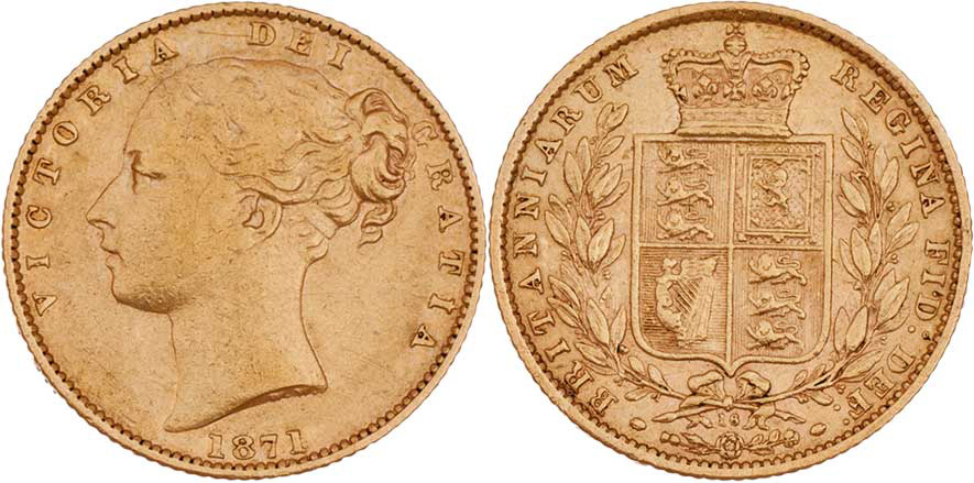 Libra 1871 - razidlo reversu s číslem "16", KM.736.2, SCBC.3853B (Au917), 7.931g, nep.hr., nep.rysky, pěkná patina