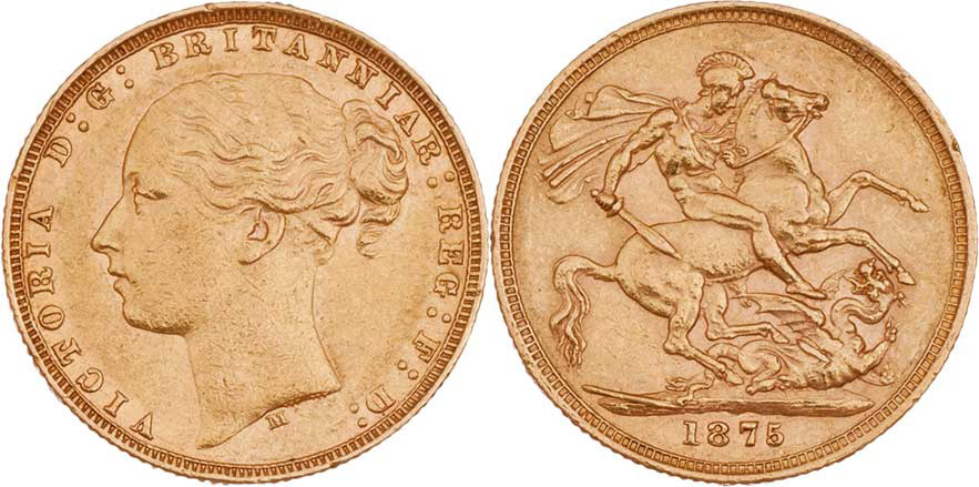 Libra 1875 M - se sv.Jiřím, Melbourne, KM.7 (Au917), 7.969g, dr.hr., nep.rysky, pěkná patina