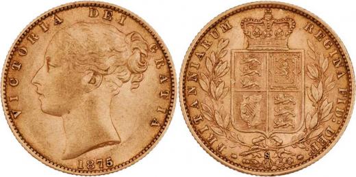 Libra 1875 S - se znakem, Sydney, KM.6 (Au917), 7.972g, nep.hr., dr.rysky, pěkná patina
