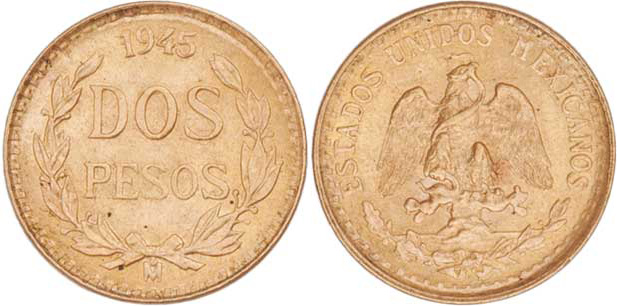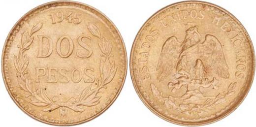 2 Peso 1945 M - novoražba, KM.461 (Au900), 1.673g