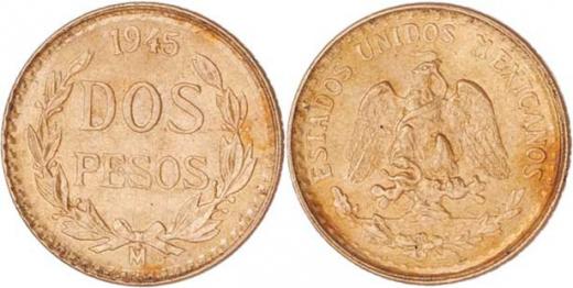 2 Peso 1945 M - novoražba, KM.461 (Au900), 1.662g