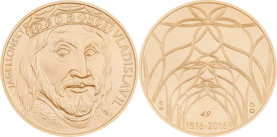 Fojtů - 10 Dukát 2016 - Vladislav II.- poprsí zprava, opis / Vladislavský sál, vročení, Sign., Au986, 42mm, 35.261g, kapsle, etue, certifikát, číslo 49/50 RR!