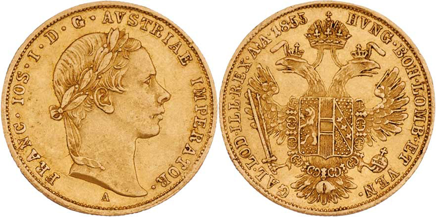 Dukát 1855 A, 3.476g, nep.hr., nep.rysky, pěkná patina