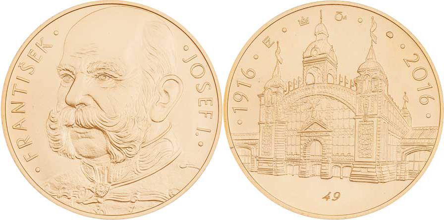 Fojtů - 10 Dukát 2016 - Fr.Josef I. - poprsí zleva, opis / Veletržní palác, vročení, Sign., Au986, 42mm, 35.205g, kapsle, etue, certifikát, číslo 49/50 RR!