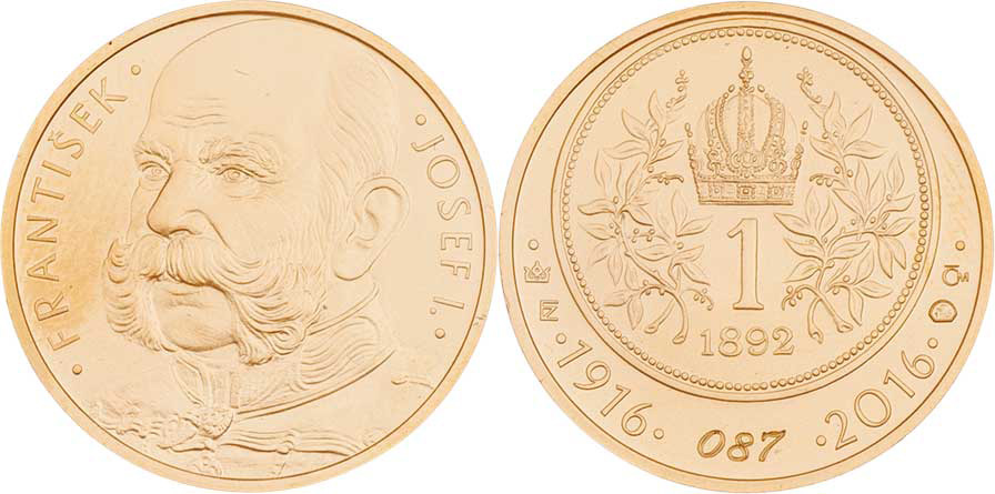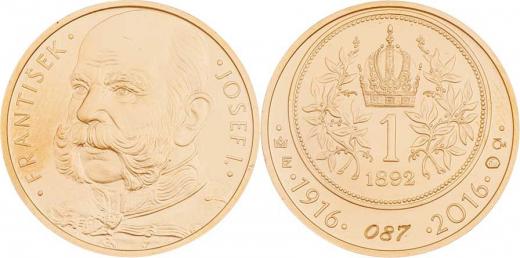 Fojtů - 2 Dukát 2016 - Fr.Josef I. - poprsí zleva, opis / replika koruny, vročení, Sign., Au986, 25mm, 7.106g, kapsle, etue, certifikát, číslo 87/150 RR!