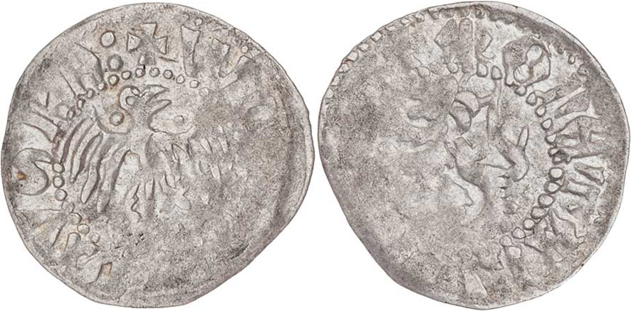 1/2 Groš b.l., orlice, opis / lev zleva, opis, Sa.5273 (2768), Kop.3065, De Wit.II.2970, 0.946g, exc., nedor., okrájený, patina RR!