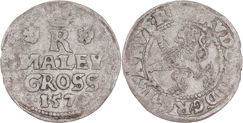 Malý groš 1579, Praha-Gebhart, HN.4c (opis 6b), nápis ". MALEY ./. GROSS ./. 1579 .", 0.888g, nedor., pěkná patina