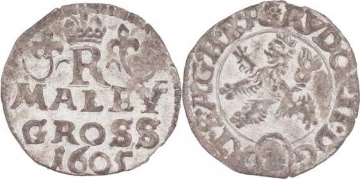 Malý groš 1605, K.Hora-Enderle, HN.13a (opis 7a), nápis " MALEY / GROSS / 1605 ", 0.728g, nep.nedor., téměř