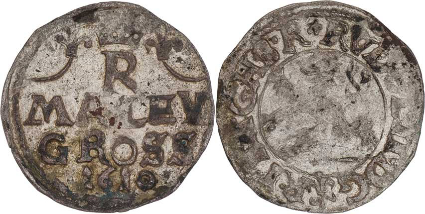 Malý groš 1610, K.Hora-Škréta, HN.19b (opis 7a), nápis " MALEY / GROSS / 1610 ", 0.892g, nep.nedor., pěkná patina R!