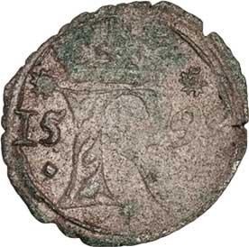 Malý peníz 1593, K.Hora-Herold, J.1e, MKČ.385, 0.357g, nep.nedor., pěkná patina R!