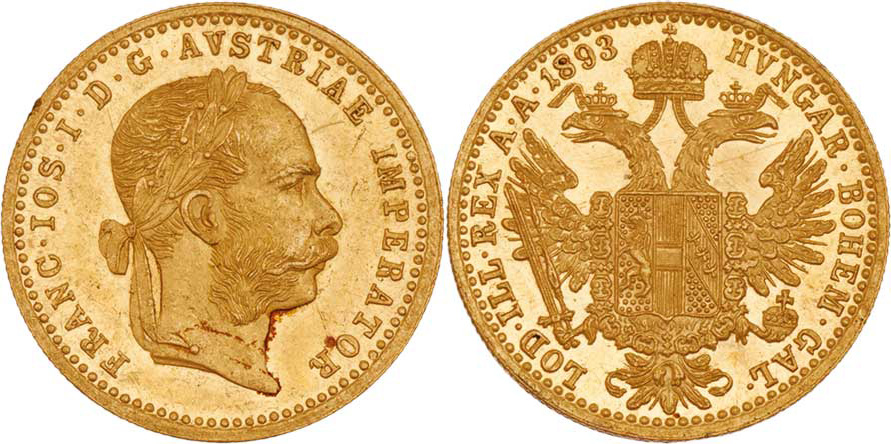 Dukát 1893, 3.489g, nep.rysky, patina
