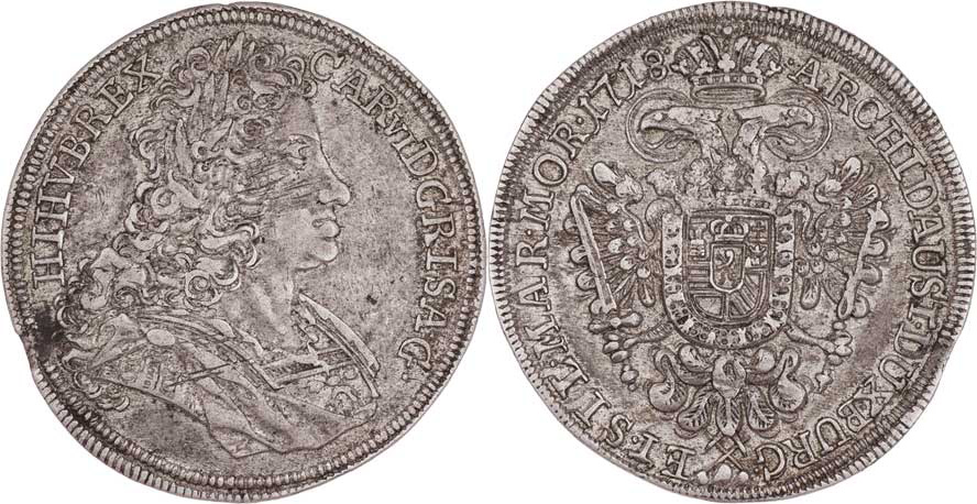 1/2 Tolar 1718, K.Hora-Weyer, J.15, MKČ.1858, 14.417g, vada materiálu, mírně just., patina