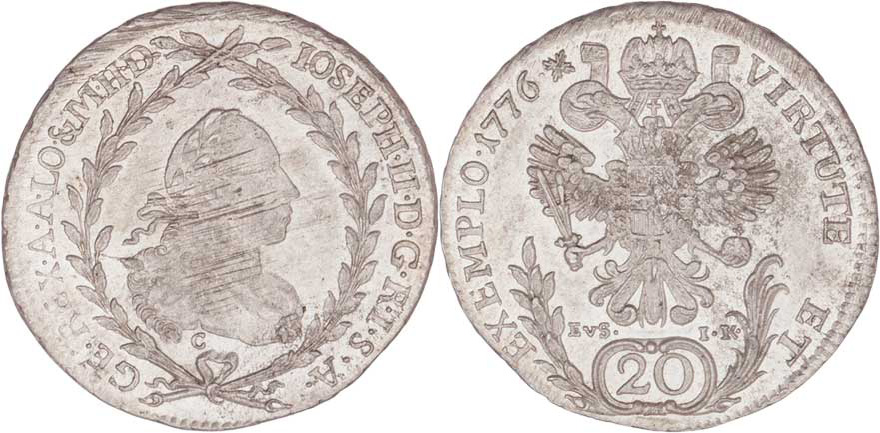 20 Krejcar 1776 C/EvS-IK, Praha, P.9, MKČ.2008, 6.579g, nep.exc., nep.just. R!