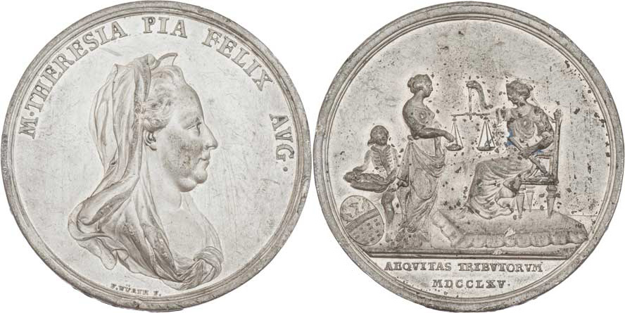 Würth - Sn medaile na daňovou reformu v Sedmihr. 1765 portrét zprava, opis / alegorie, 2-řádkový nápis, Sign., 59mm, 64.209g, H.2944, hr., škr., patina