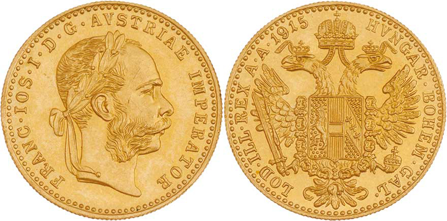 Dukát 1915 - novoražba, 3.493g, 3.492g, 3.485g 3ks