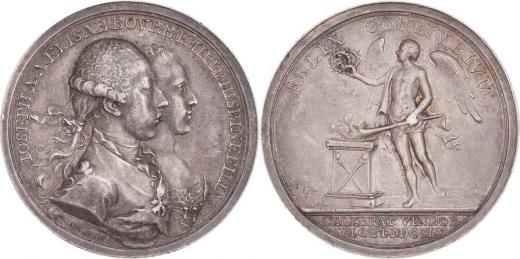 Wideman - AR medaile na svatbu ve Vídni 6.10.1760 - dvojportrét zprava, opis/ genius s pochodní u oltáře, písmo, Sign., 39mm, 26.057g, M.1891, H.3115, patina
