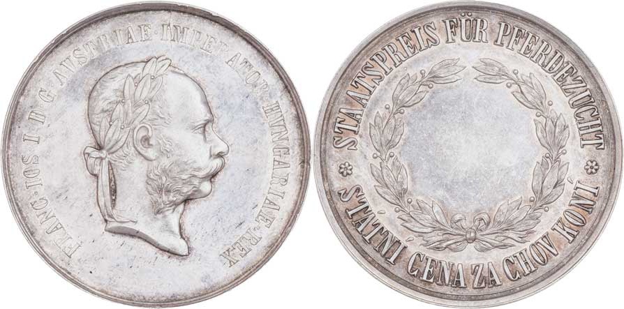 Tautenhayn - Státní cena za chov koní b.l. - poprsí zprava, latinský opis / věnec a německo-český opis, Nesign., Punc., Ag900, 40mm, 16.552g, ČS.1568, patina