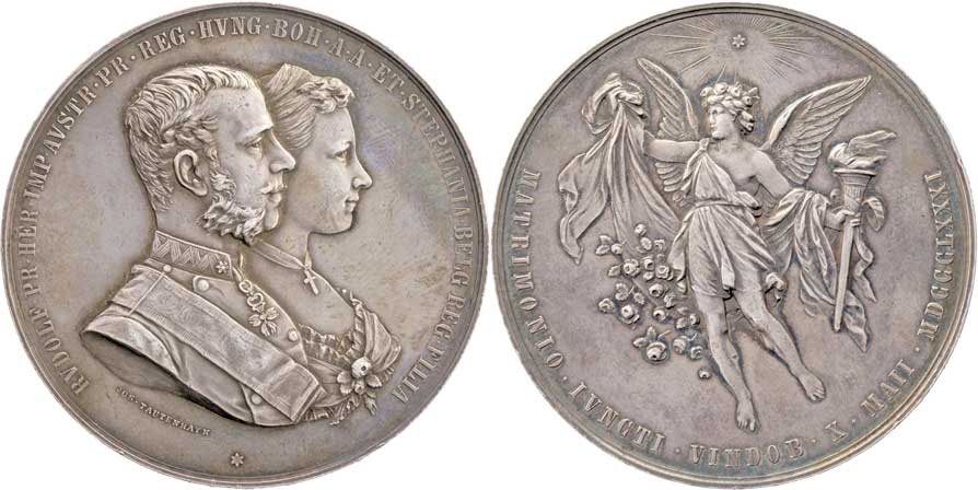 Tautenhayn - AR medaile na památku sňatku 10.V.1881 - dvojportrét, opis / anděl s pochodní a květy, opis, Sign., 55mm, 81.953g, Don.3252, H.4002, nep.hr., tém.