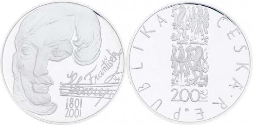 200 Kč 2001 - 200 let narození Františka Škroupa, KM.58 (Ag900, 13.0g, 3300ks), kapsle, etue, text